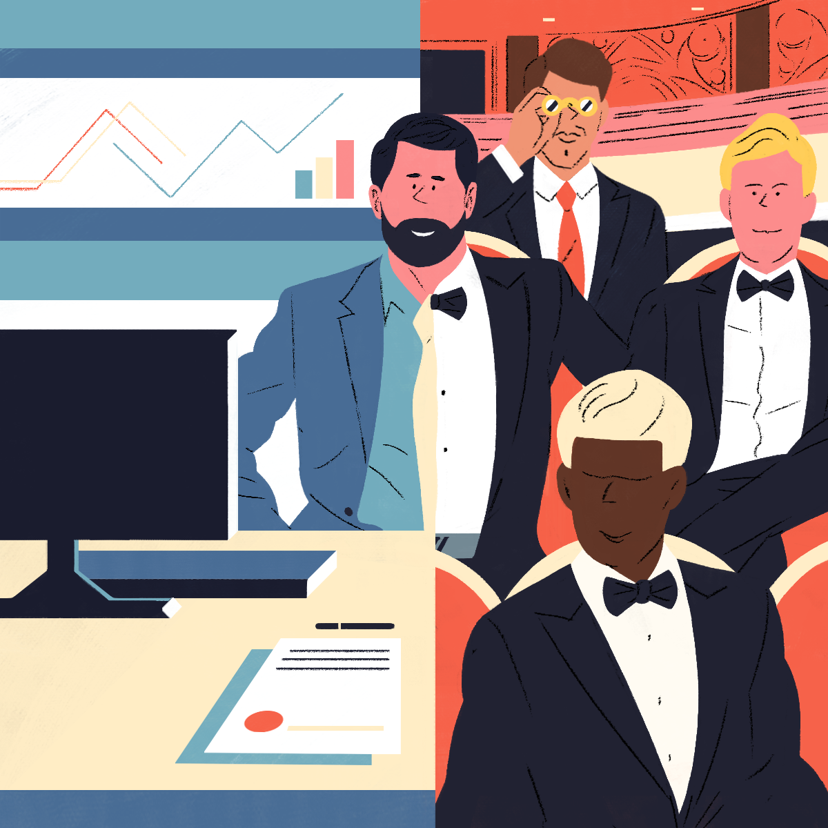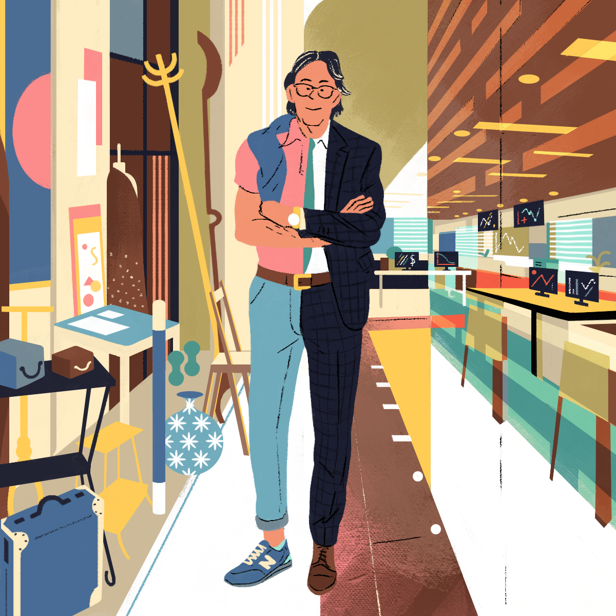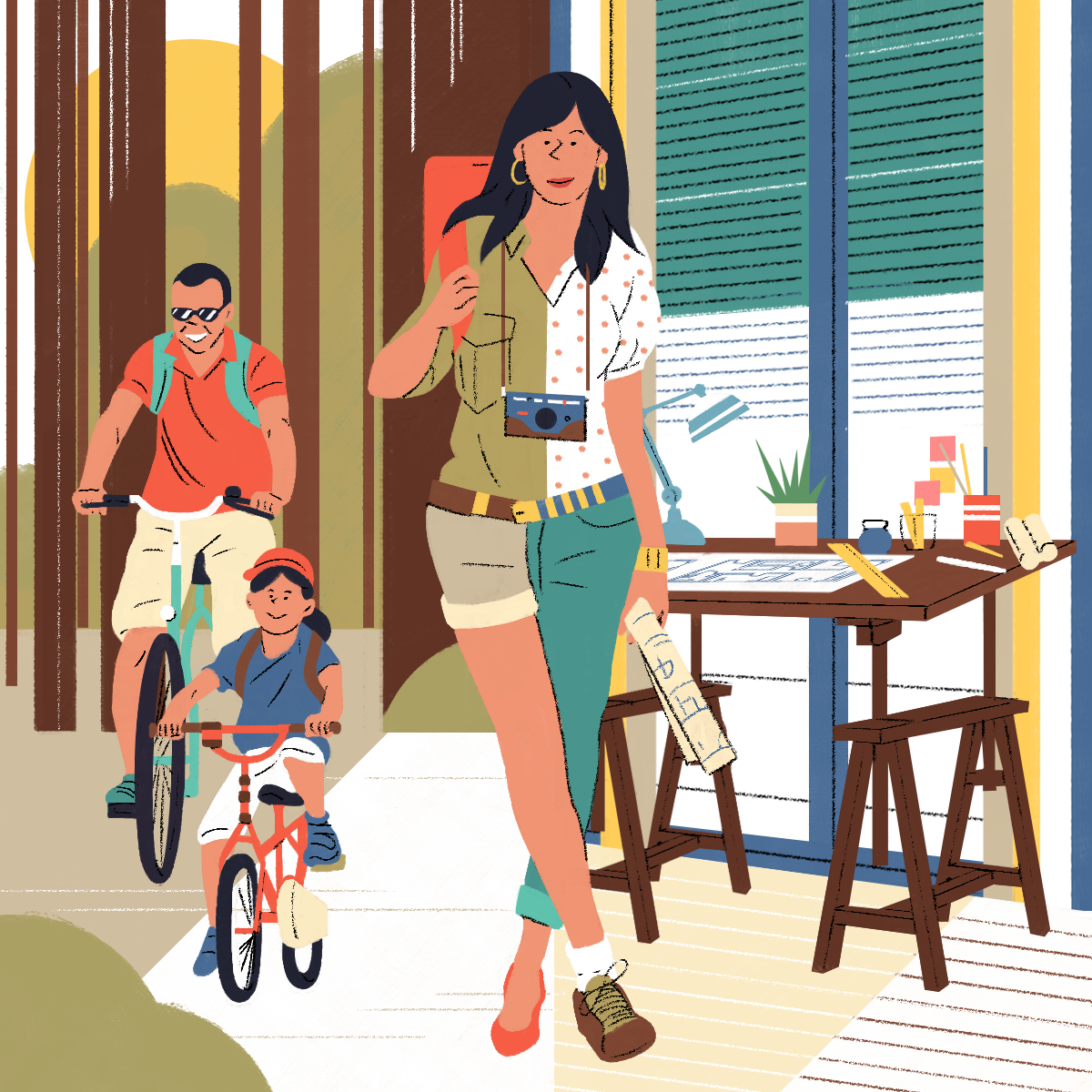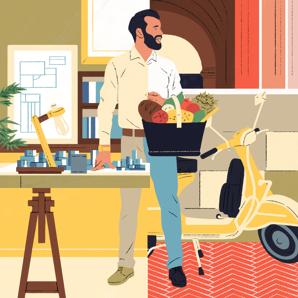 The web-platform and app Gustav asked me to design those "personas" illustrations. Each illustration describes the professional life of the character on one side and his/her hobby on the other side.
