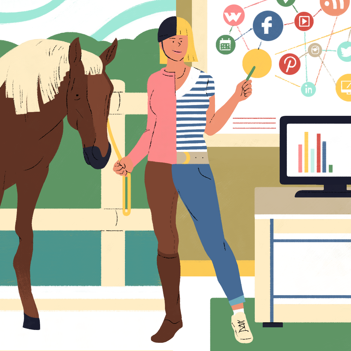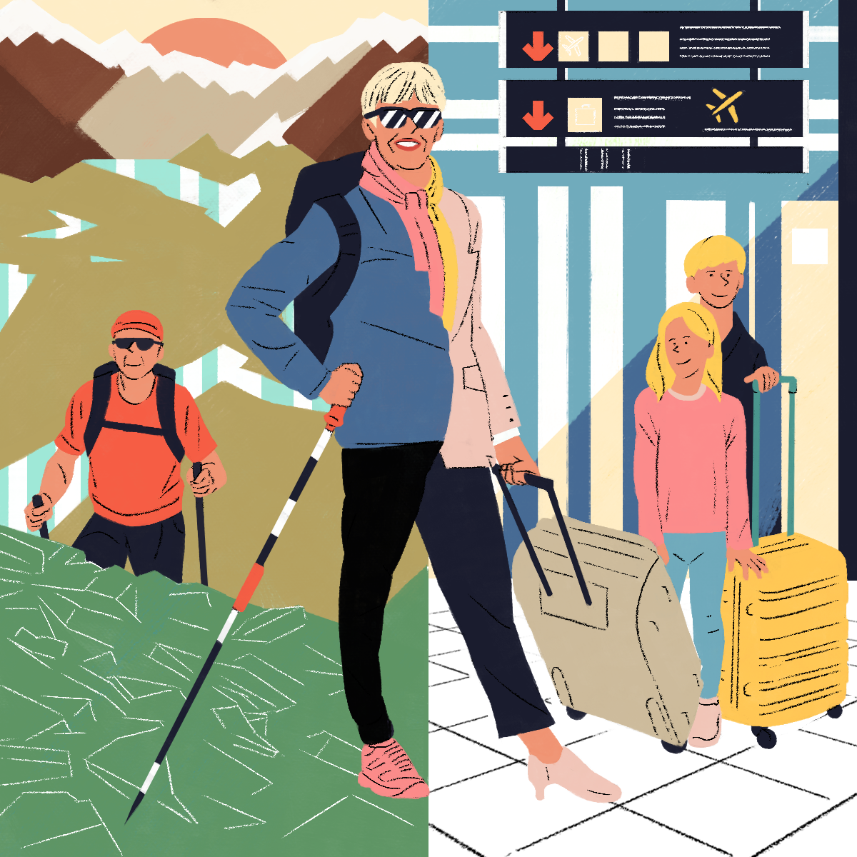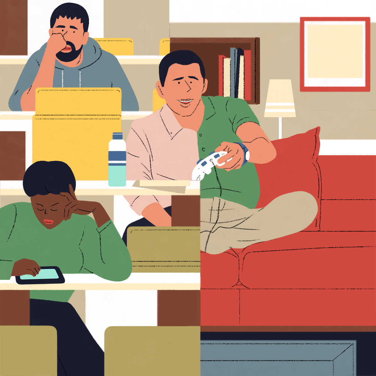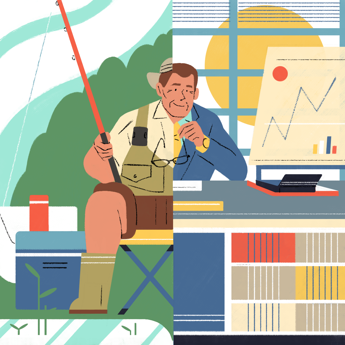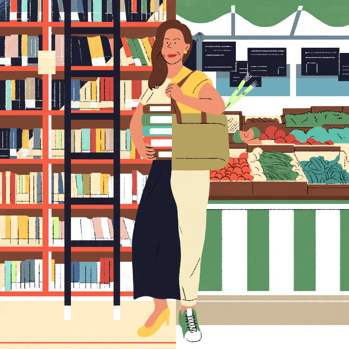 The web-platform and app Gustav asked me to design those "personas" illustrations. Each illustration describes the professional life of the character on one side and his/her hobby on the other side.