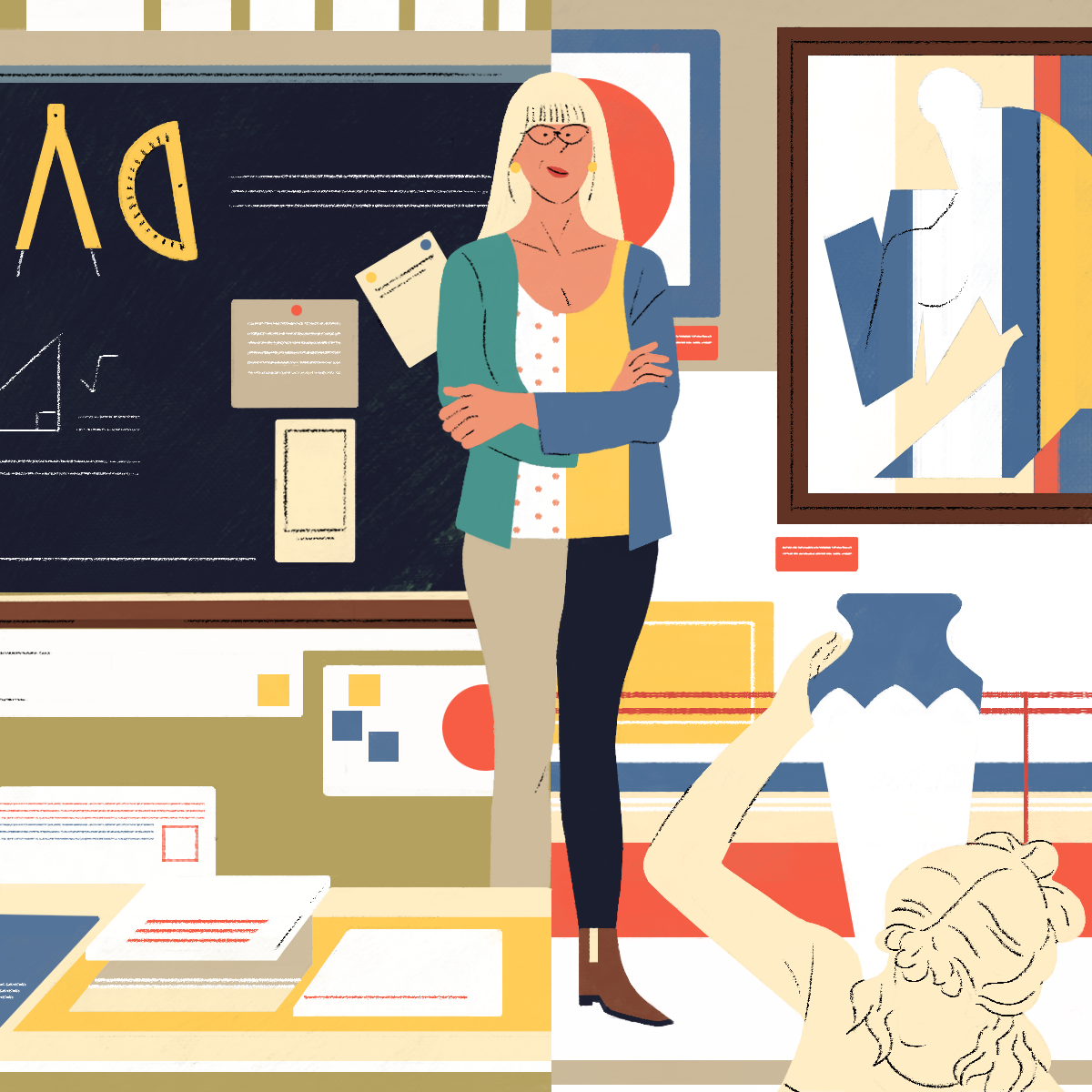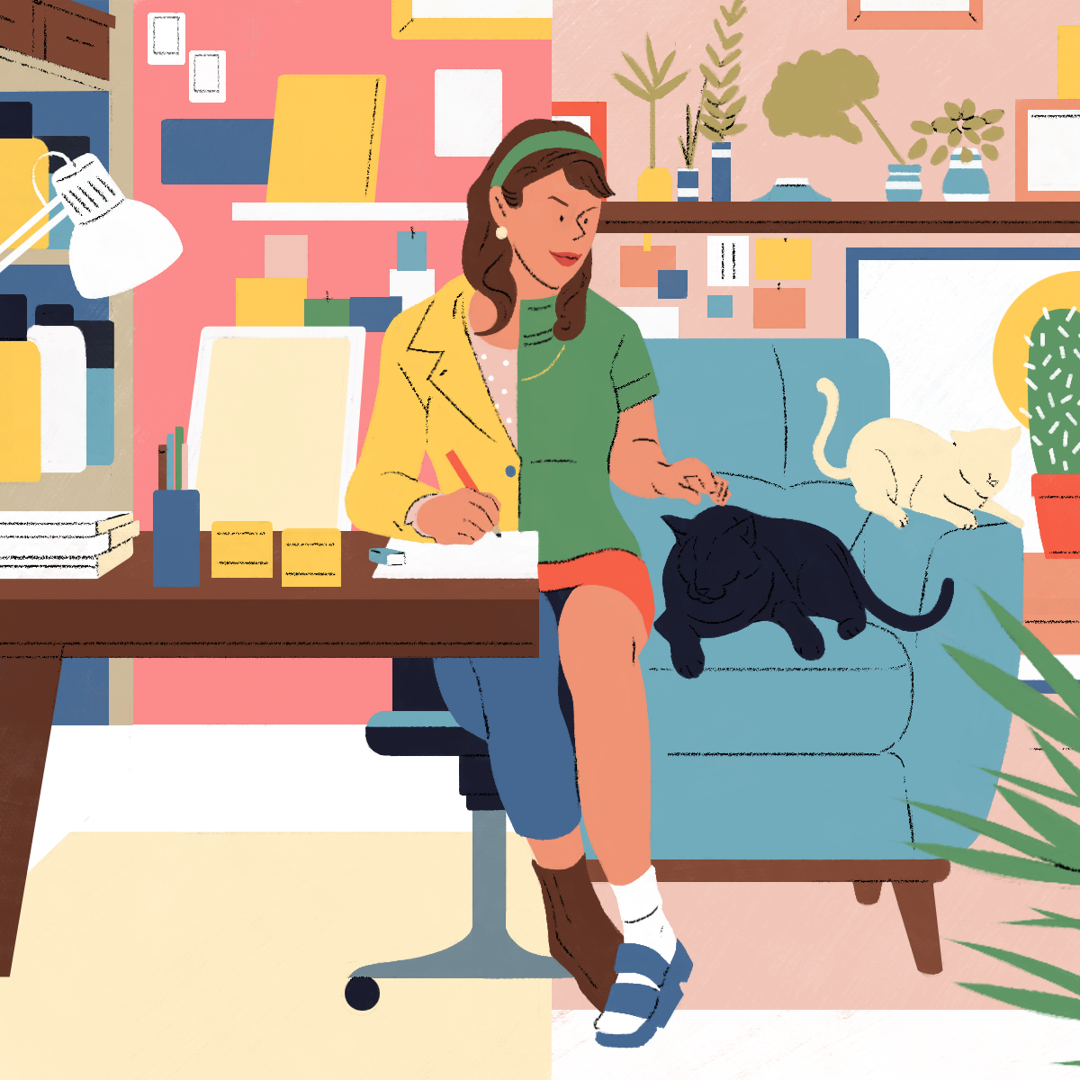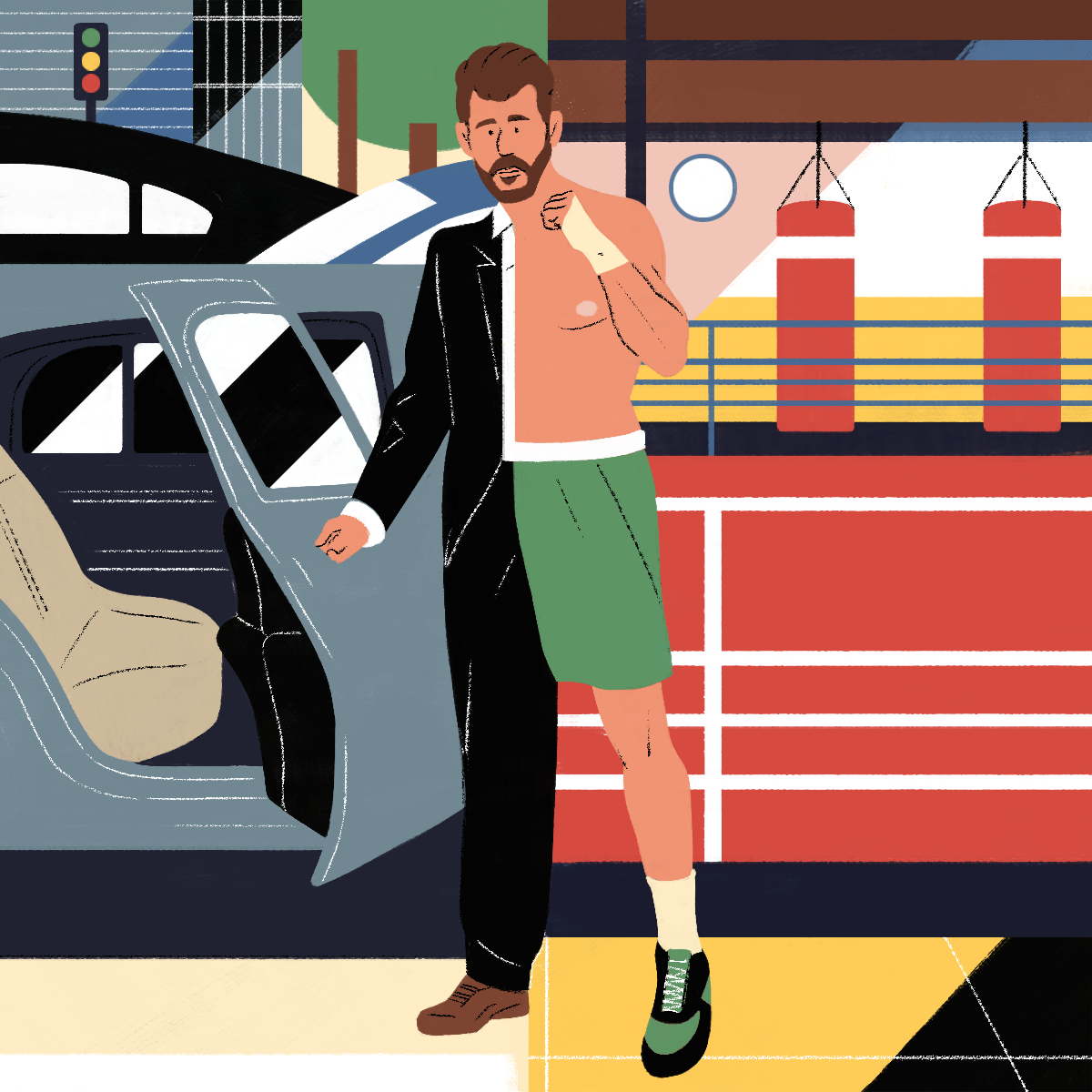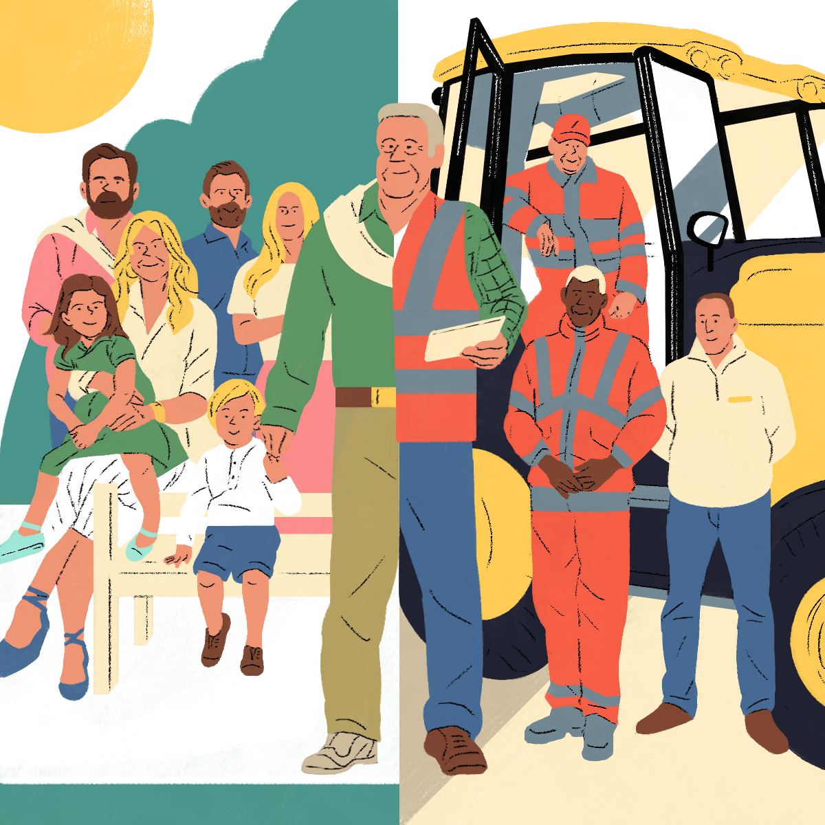 The web-platform and app Gustav asked me to design those "personas" illustrations. Each illustration describes the professional life of the character on one side and his/her hobby on the other side.