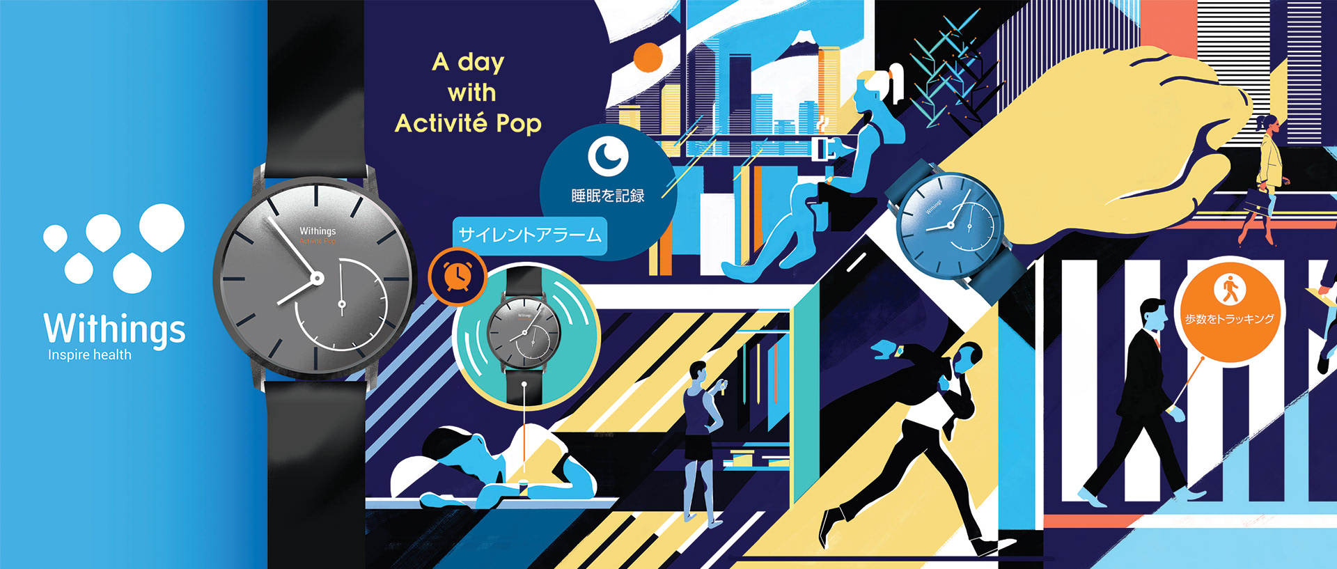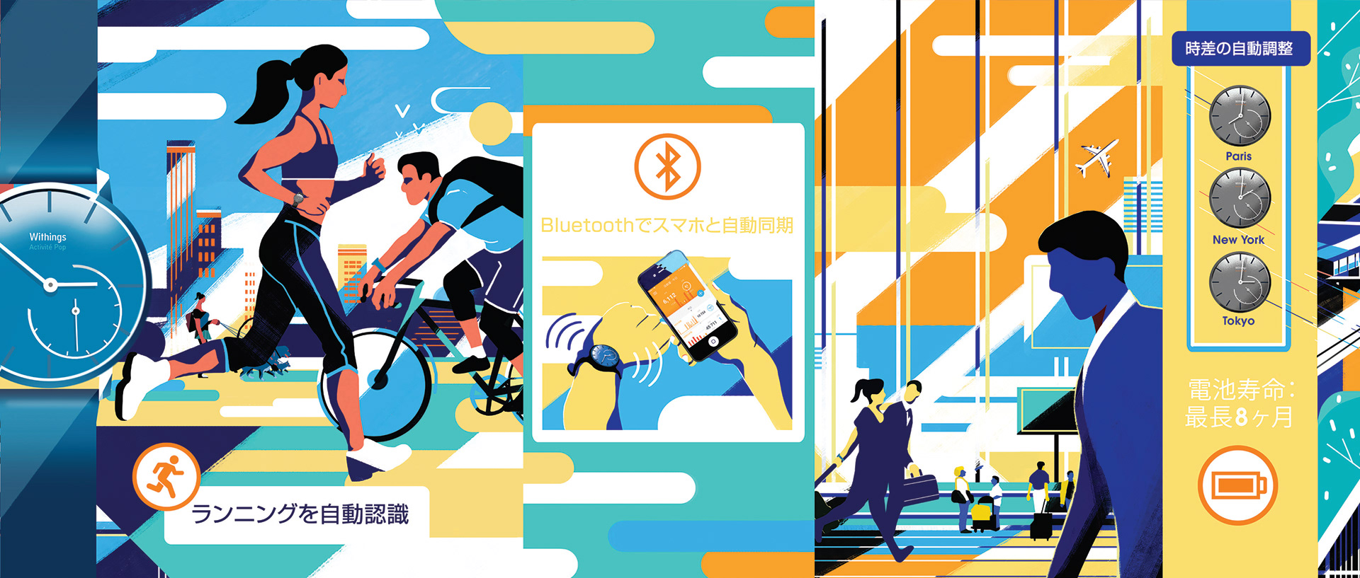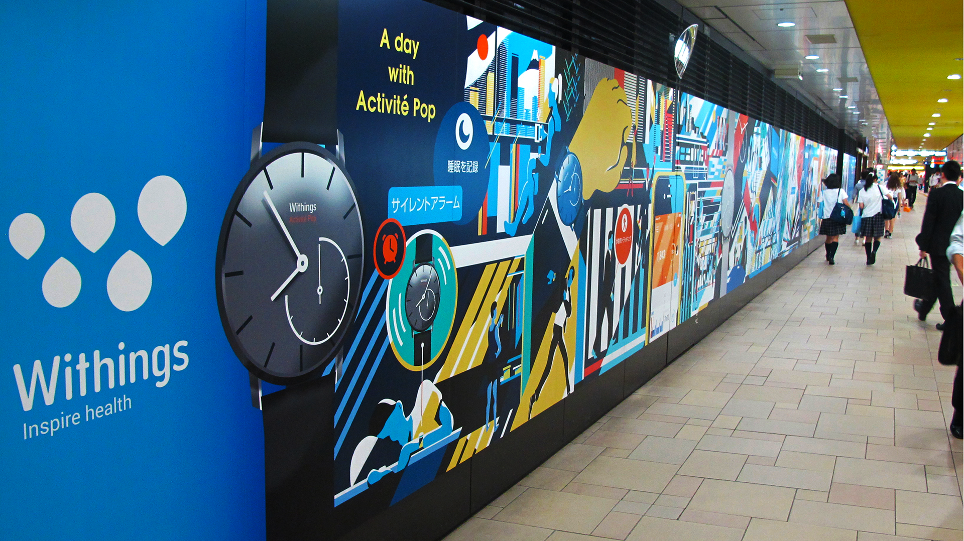 I created this illustration for the smart-watch brand Withings. It was then printed and displayed on a 1.8 meter-high and 27.5 meter-long wall in Omotesando station, in Tokyo.